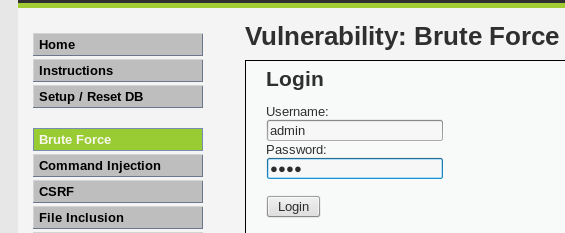 다음으로 DVWA에서 Username : admin, Password : aaaa를 입력해 본다.