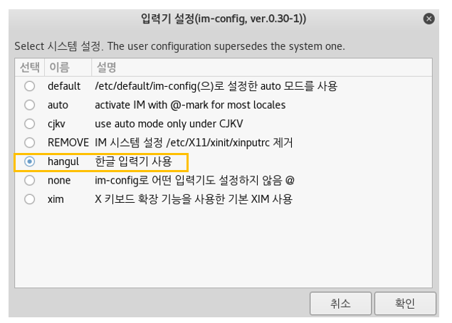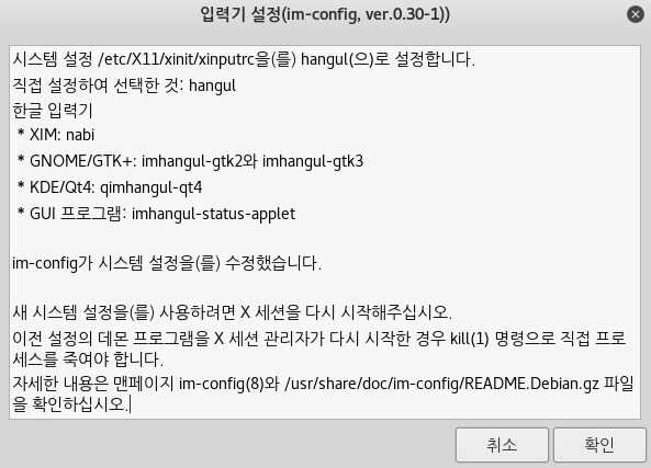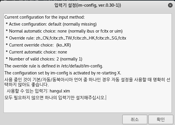 2. 입력기 설정을 위한 im-config 패키지 설치