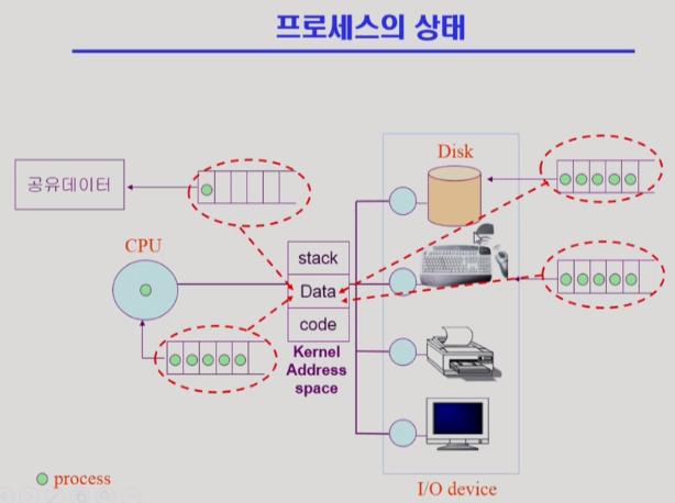 큐가 줄세워진 것을 보면 OS가 프로세스를 관리하기 위한 자료구조, 즉 PCB를 줄 세움.